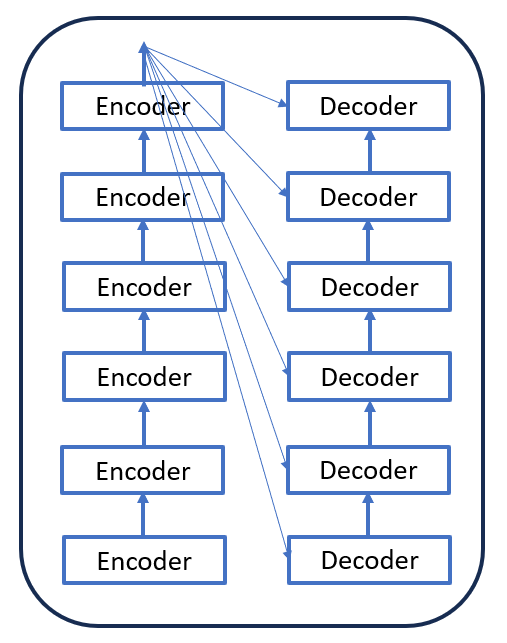 We have seen both the Encoder and Decoder separately. Encoder-only architecture is BERT while Decoder-only Architecture is GPT. Similarly, the architecture that contains both Encoder and Decoder is called T5 i.e. `Text to Text Transfer Transformer’. Fig. 8 below shows how Encoder and Decoder are connected in full Encoder and Decoder architecture.